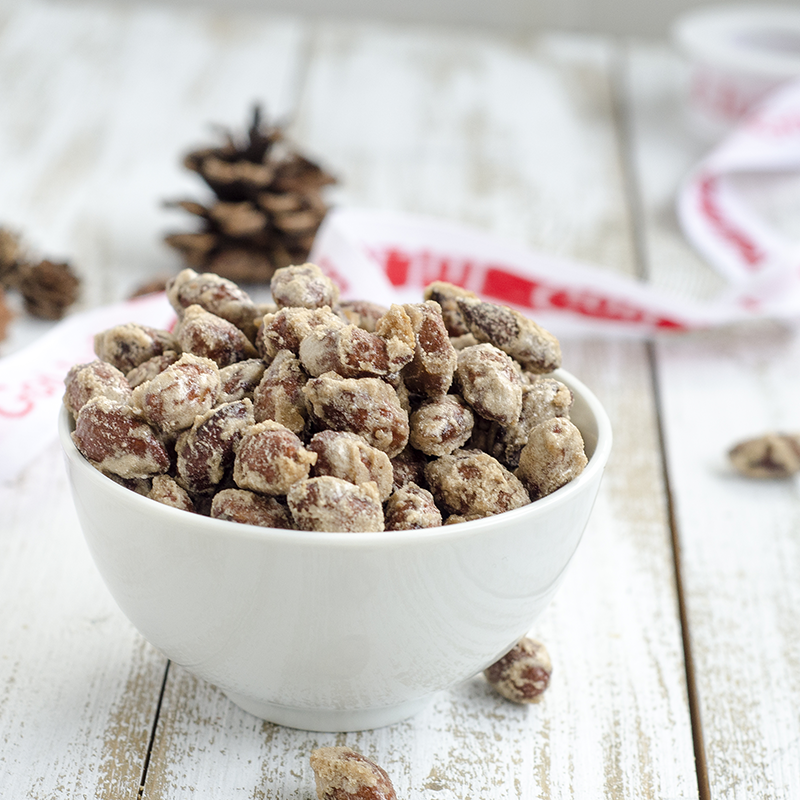 Dette er en av de tingene jeg ikke klarer å slutte å spise, og da jeg lagde det til julegaver i år måtte jeg lage to omganger. Jeg spiste nemlig opp den første selv, haha! Pakk inn ca 100 gram mandler i en kjegleformet cellofanpose, og pynt med fine bånd og kanskje en lapp, og vips har du en kjempelekker gave.